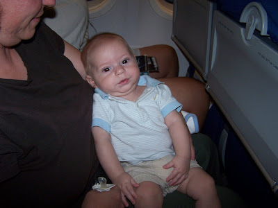 We have parked the car in long term parking and are on the bus heading to the terminal! This is baby Adam's first bus ride! As you can see from the photo it was raining really hard but we survived!